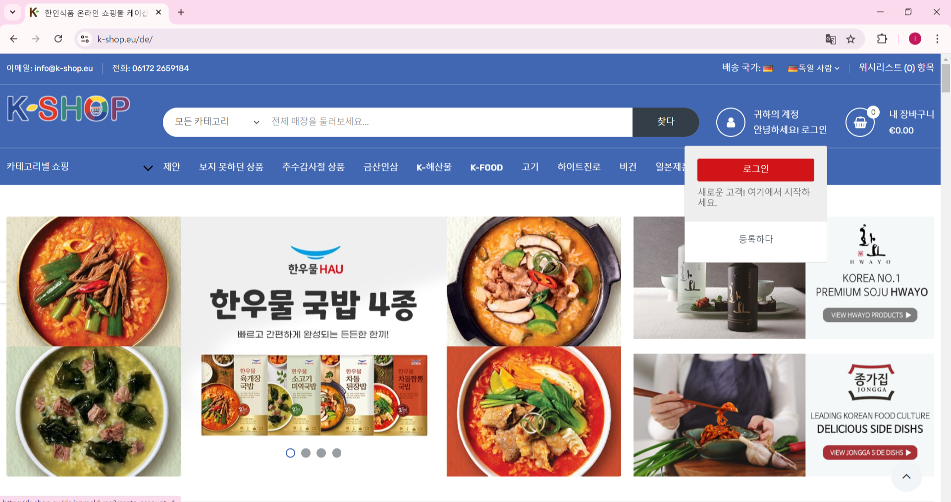 otto에서 성공적으로 전기장판이 오고나서 자신감 뿜뿜해서 한국음식도 인터넷으로 주문을 해보기로 했다.