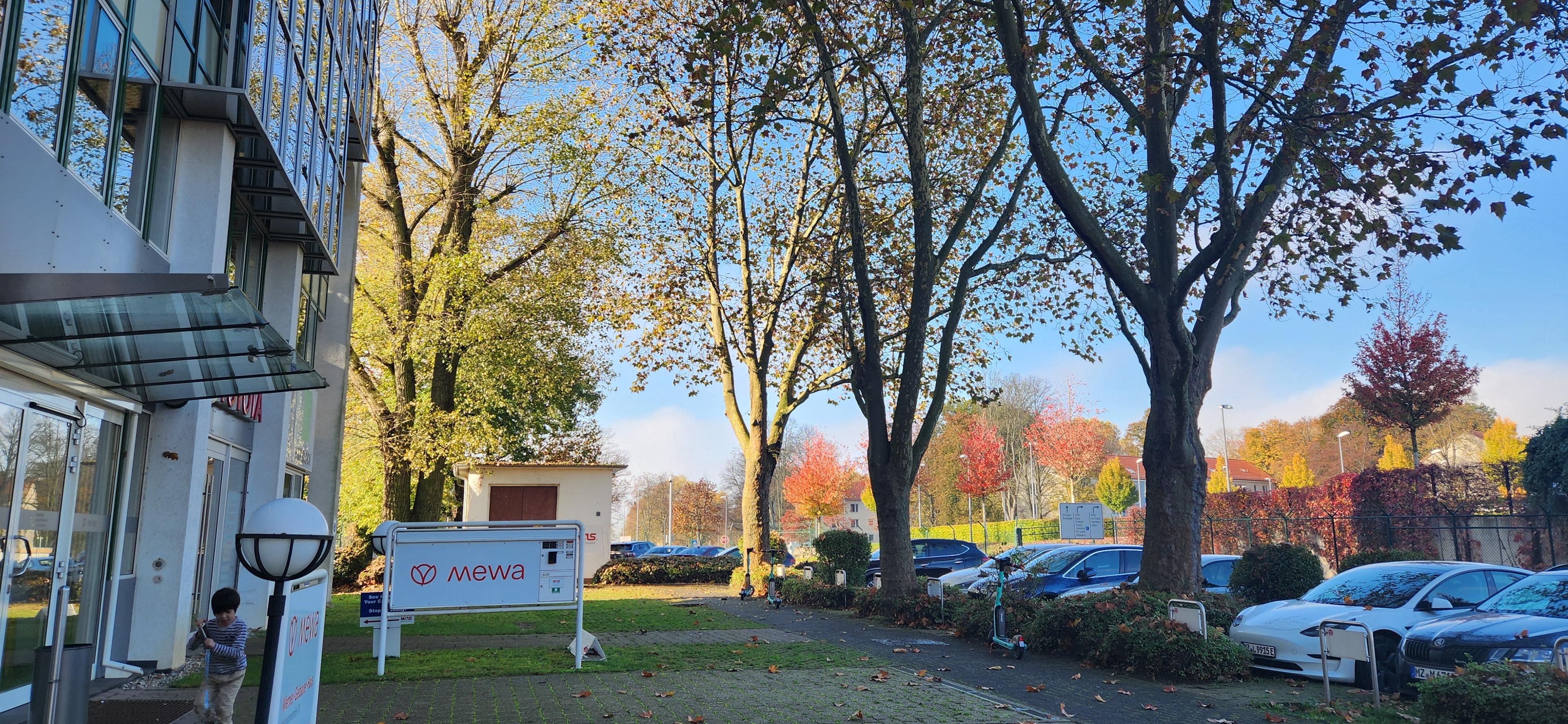 독일도 4계절이 있다. 지금 여기는 늦가을인듯하다. 케바케이지만 경량패딩, 장갑&모자 패션이 눈에 띄게 많다. 아직까지 꽁꽁 싸매고 다니고 싶지 않아서 목도리만 잘 두르면 가죽재킷이나 트렌치코트도 아직은 괜찮다. 신랑 직장동료부부를 만나기로 한날 잠깐의 단풍 풍경.