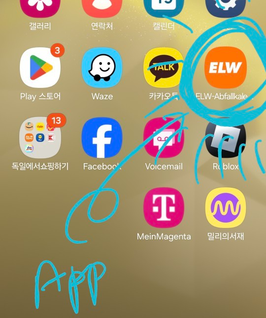 일명 눈치작전?! ㅋ 그런데 2주간 해보니 딱히 요일이 정해져 있는것 같지가 않은거다! 그러다가 집주인께 물어보니 어플을 하나 깔라고 하셔서 남편과 함께 어플을 깔았다.