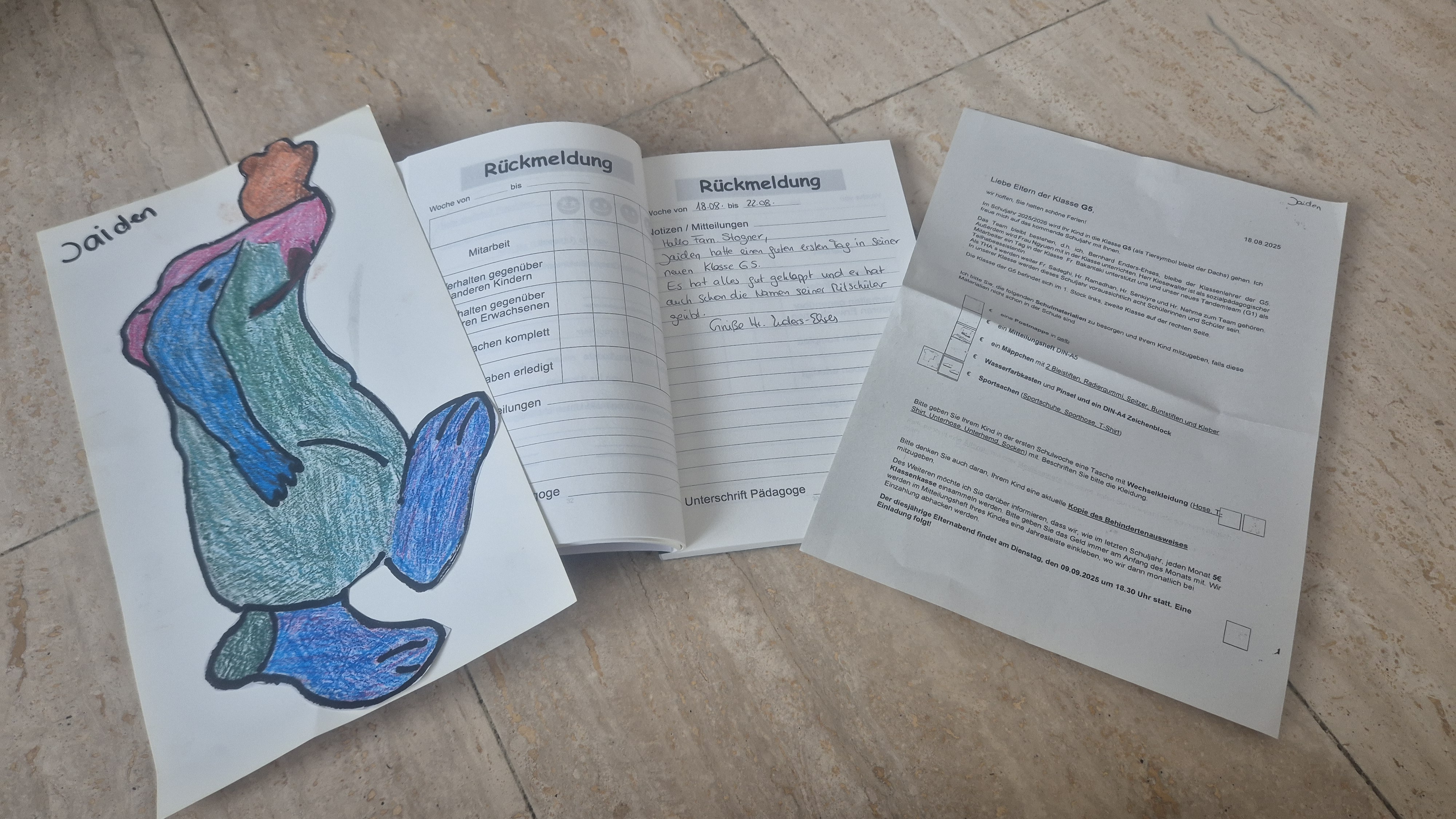 떨리는 마음으로 첫날이니까 게다가 작년 10월부터 거진 10개월간 학교며 어디든 나와 같이 다녔던 아이인지라 엄마와 떨어져 있을 수 있을까? 걱정히 많았다. 독일어 환경에 이제 생으로 던져지는거고.. 그래서 학교에서도 중간에라도 연락을 주겠노라 했고 나도 당연히 중간에 나오겠지 싶었는데 웬걸?! 끝까지 야무지게 하고 옴.
