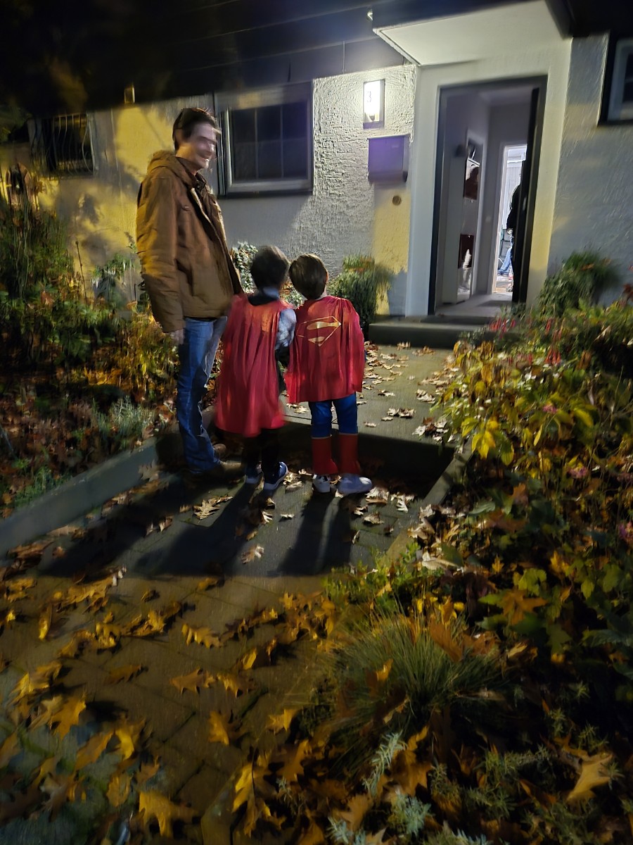 한국이었다면 학교, 학원, 어린이집 등 특정 한 장소에서 같은 소속을 가진 아이들끼리만의 닫힌 축제였다면 여기는 모든 아이들이 온 동네동네를 휘젓고 다니며 누가 누군지도 모르면서도 서로서로 까르르 웃고, trick or treat을 하다보니 한집앞에 얼떨결에 같이 합류해서 친구들인양 나란히 줄서서 바구니를 내미는 귀여운 모습도 보였다. 처음으로 아, 독일에 오길 잘했다는 생각을 한 것 같다.