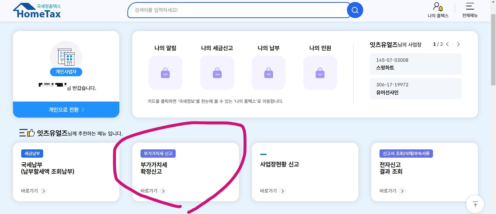 이렇게 알림이 뜨면서 나의 세금신고가 보일것이다.