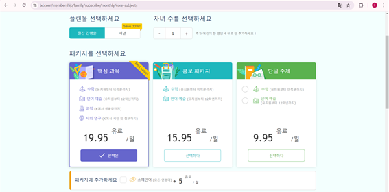 1년치를 결제하면 할인 ... 더불어 형제가 같이 한다면 아이별로 프로필 설정도 가능하고 할인을 더 받을 수 있다.