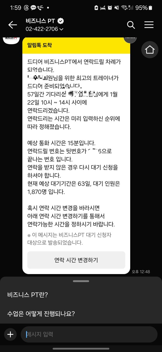 그리하여 나는 2월부터 비즈니스 PT를 받는다.