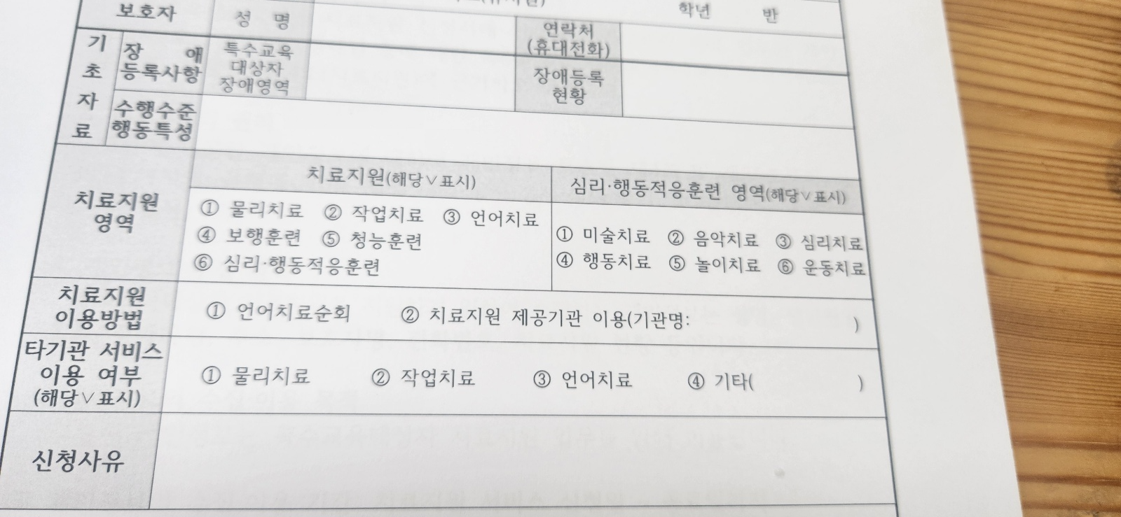 유치원 특수반 준비할때 기억으로는 7~8월 즈음에 방문했었던 것 같은데 4월에 문의해보니 6월에 신청을 받는다고 했다. 각 시마다 특수교육지원청에서 유,초,중,고 장애아이들의 학교배정을 미리 시작을 하는데 기간은 각 자치별로 다르다.-,-a;;