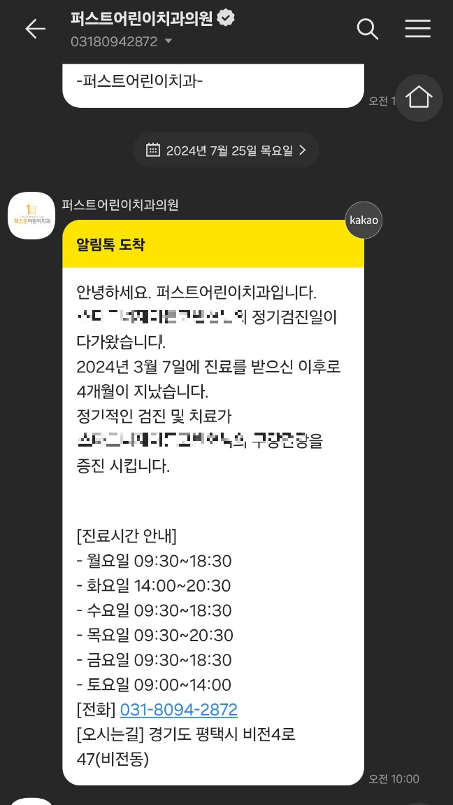 치과 진료를 받고 나면 3개월즈음 지나면 정기검진을 받으러 오라고 친절히 카톡안내가 온다.
