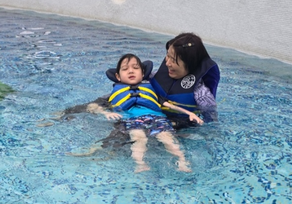 아산도고스파비스에 간 날. 선생님과 함께 물놀이중