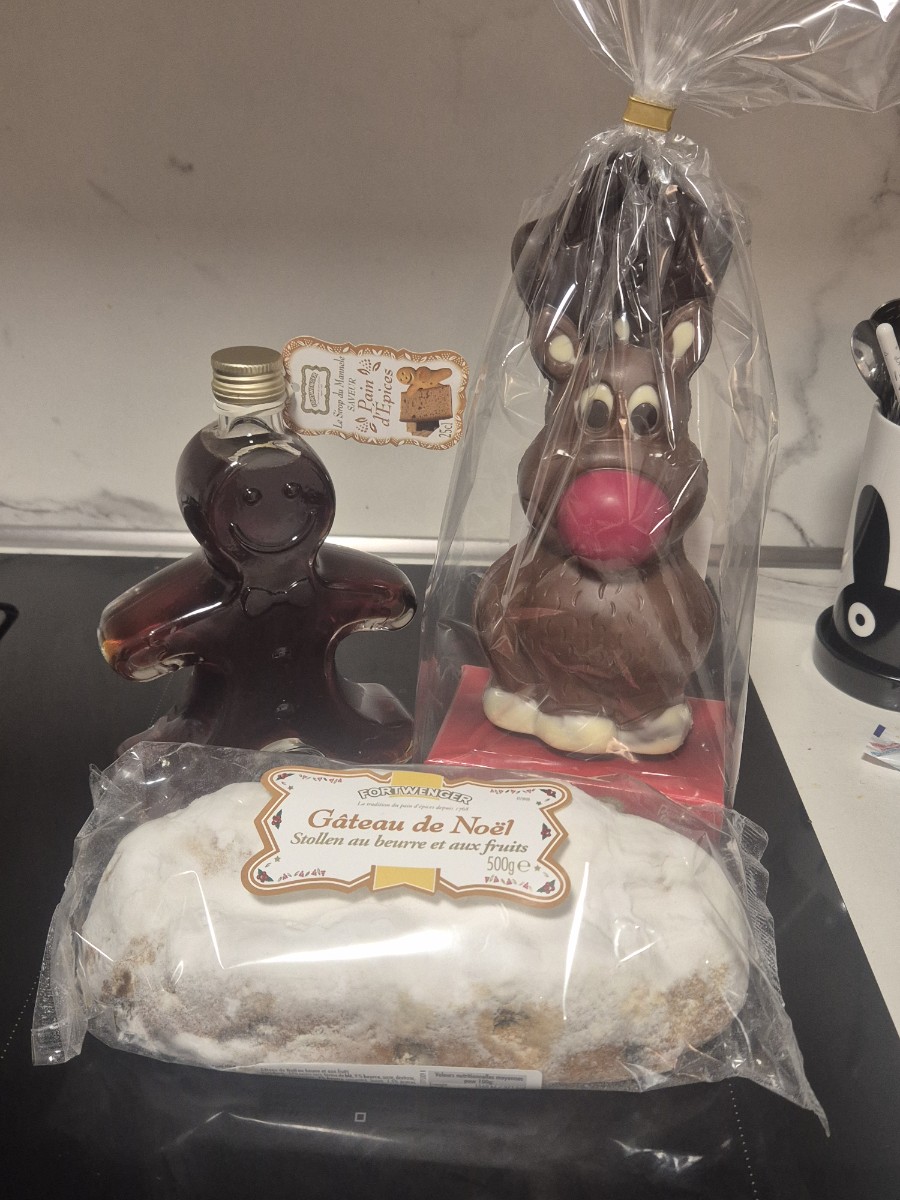 핫케익 시럽이랑 루돌프 초콜릿(제이든이 손에 집고 놔주질 않아서 어쩔 수 없이 삼.ㅋ),