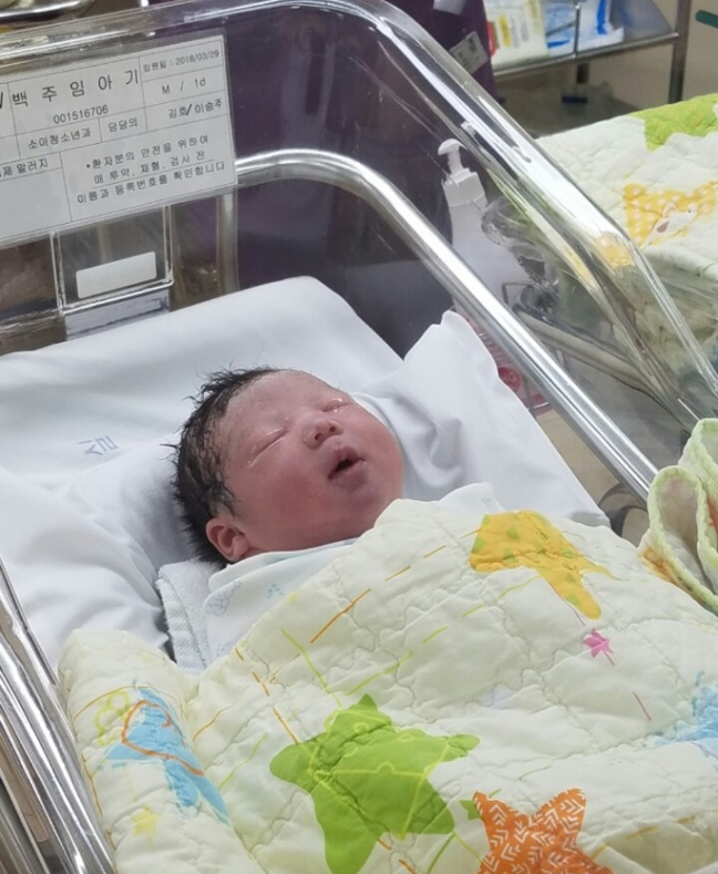 2초간의 정적.. 큰애는 으앙~하면서 울었던 기억이 나는데 ... 울던 큰 아이를 내 가슴팍에 안겨주기도 하셨었는데... 제이든이 울지를 않았다. 간호사 한분이 "어!" 하면서 아이를 어디론가 급하게 들고 나갔다. 아이를 안아보지 못하고 분만실에서 후처치를 받을 즈음에 다시 간호사쌤이 오면서 아이 괜찮다고, 오래 끼어있어서 멍도 좀 들고 혈종도 보이지만 괜찮을 거라고 말씀해 주셨다. 그렇게 우여곡절끝에 제이든을 만났다.